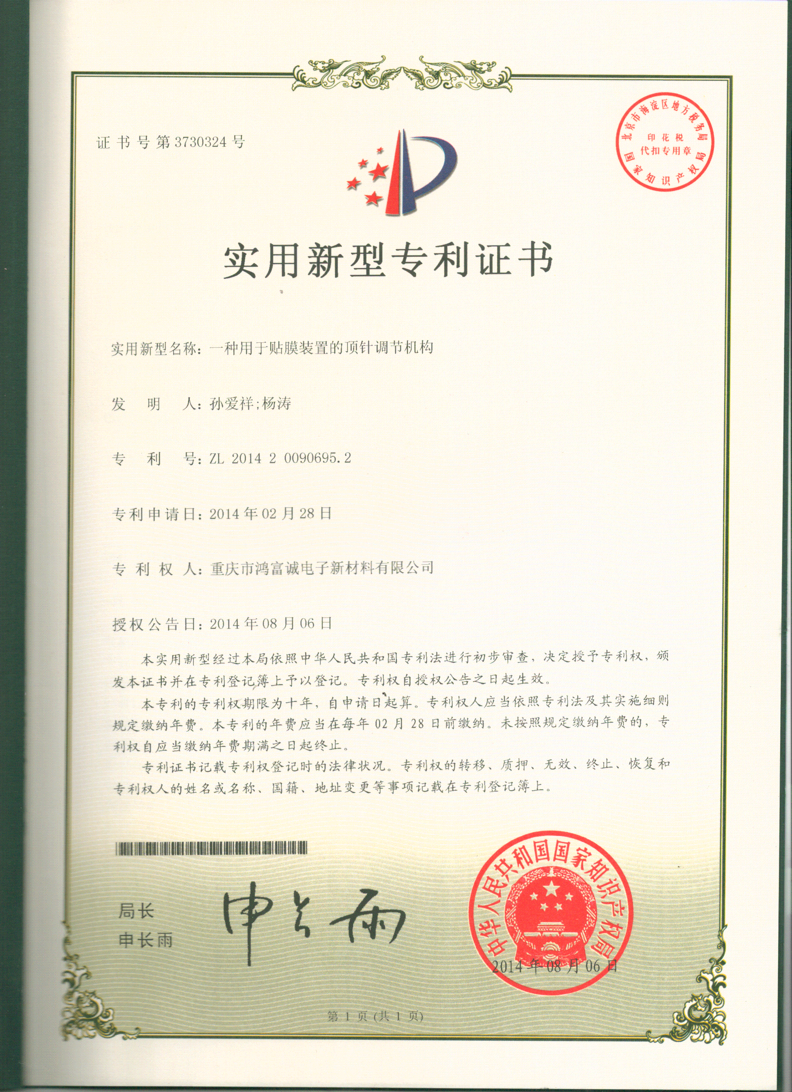 • 一種用於貼膜裝置的頂針調節機構